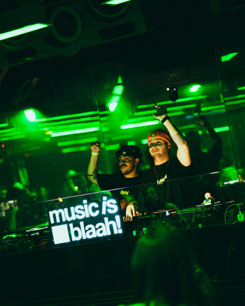 A curadoria da noite seguiu uma lógica simples e eficaz: artistas que não apenas assinaram pela music is blaah!, mas que verdadeiramente representam a identidade sonora que a label vem construindo. Deeft B2B Blurryvision abriram o showcase, estabelecendo o tom de uma noite que privilegiaria fluxo orgânico sobre momentos forçados.
